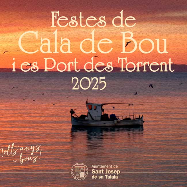 Festes patronals Sant Josep de Sa Talaia: 19 de març 2025 2024 Sant Francesc: 2 d’abril 2025 Sant Jordi: 23 d’abril 2025 2024 Festes del Carme: 16 de juliol 2025 2024 Sant Agustí: 28 d’agost 2025 2024 2023 Es Cubells: 15 d’ octubre 2025 2024 2023 Cala de Bou: octubre 2025 2024 2023 Nadal a Sant Josep 2024 2023