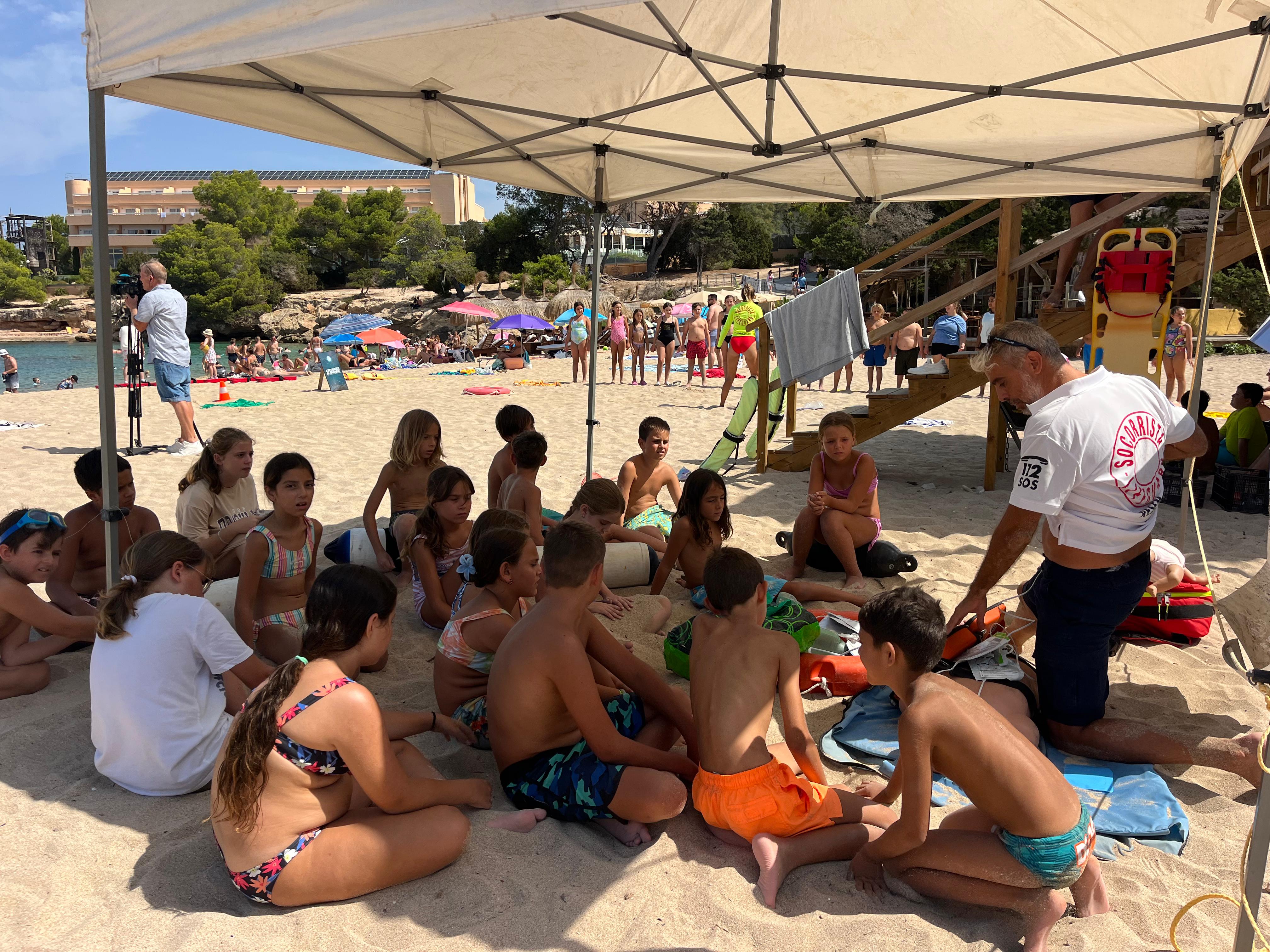 En esta ocasión, la jornada ha contado con la participación de 45 niños procedentes de las tres escuelas de verano del municipio: CEIP L’Urgell (15 niños), CEIP Es Vedrà (10 niños) y CEIP Can Raspalls (20 niños). Los niños y niñas han podido participar en talleres prácticos de reanimación cardiopulmonar (RCP), conocer las banderas y señales de prevención utilizadas en las playas, y recibir formación sobre la importancia de mantener el entorno limpio y seguro.