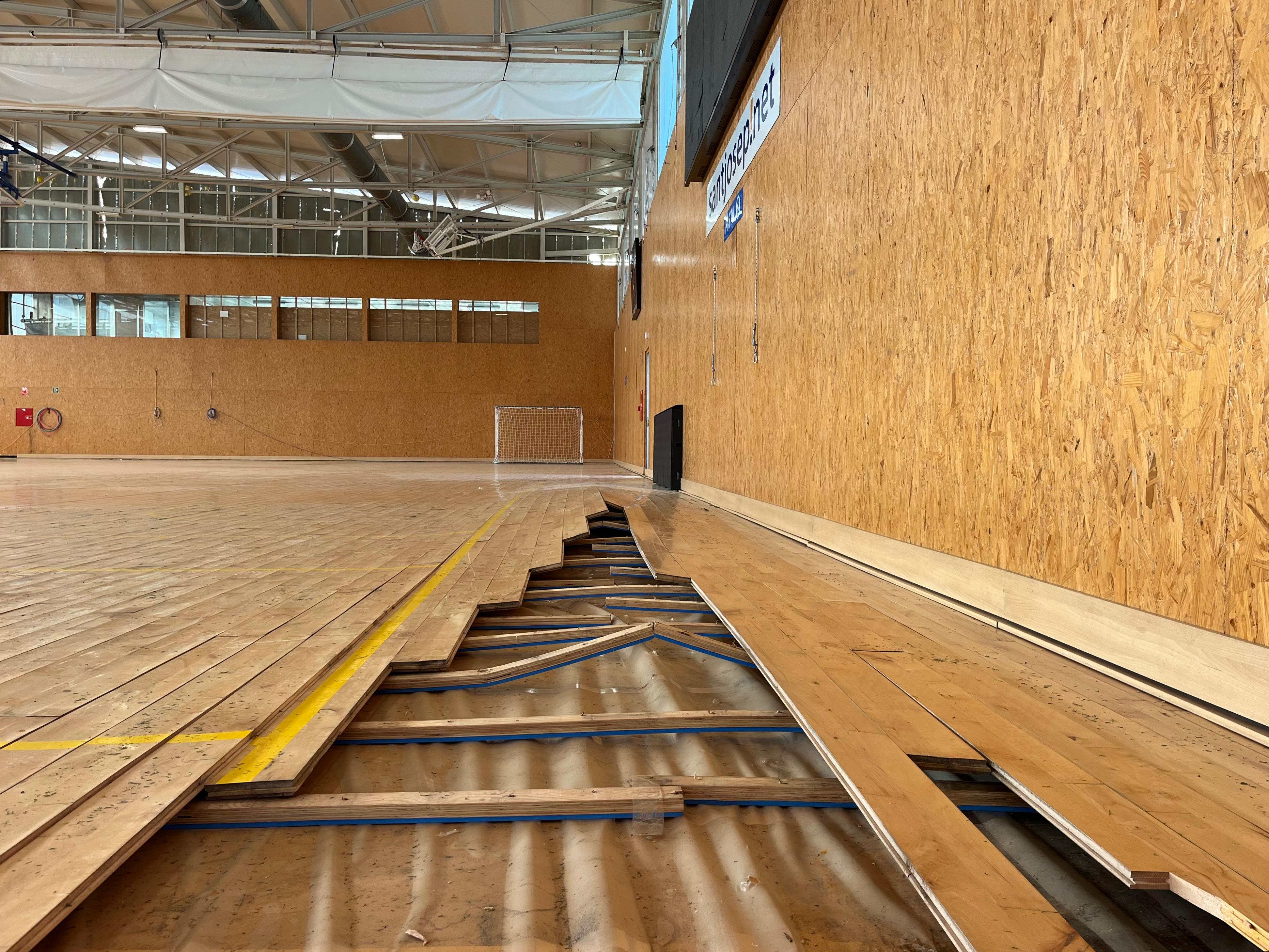 El Ayuntamiento de Sant Josep de sa Talaia ha comenzado este martes la retirada del parqué del pabellón de Can Guerxo, una de las instalaciones municipales más afectadas por los episodios de DANA. El pavimento actual presenta un estado muy deteriorado y esta actuación permitirá evaluar el estado del suelo inferior.