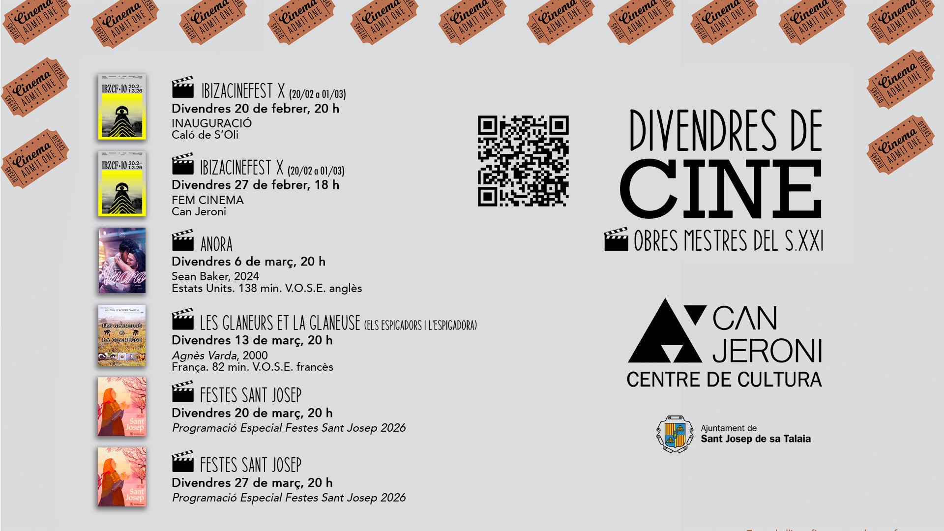 El Ayuntamiento de Sant Josep de sa Talaia, a través de la Concejalía de Cultura, ha presentado una nueva edición del ciclo ‘Viernes de Cine en Can Jeroni’, una propuesta cultural plenamente consolidada en el municipio que, este 2026, pone el foco en una selección de las mejores películas del siglo XXI.