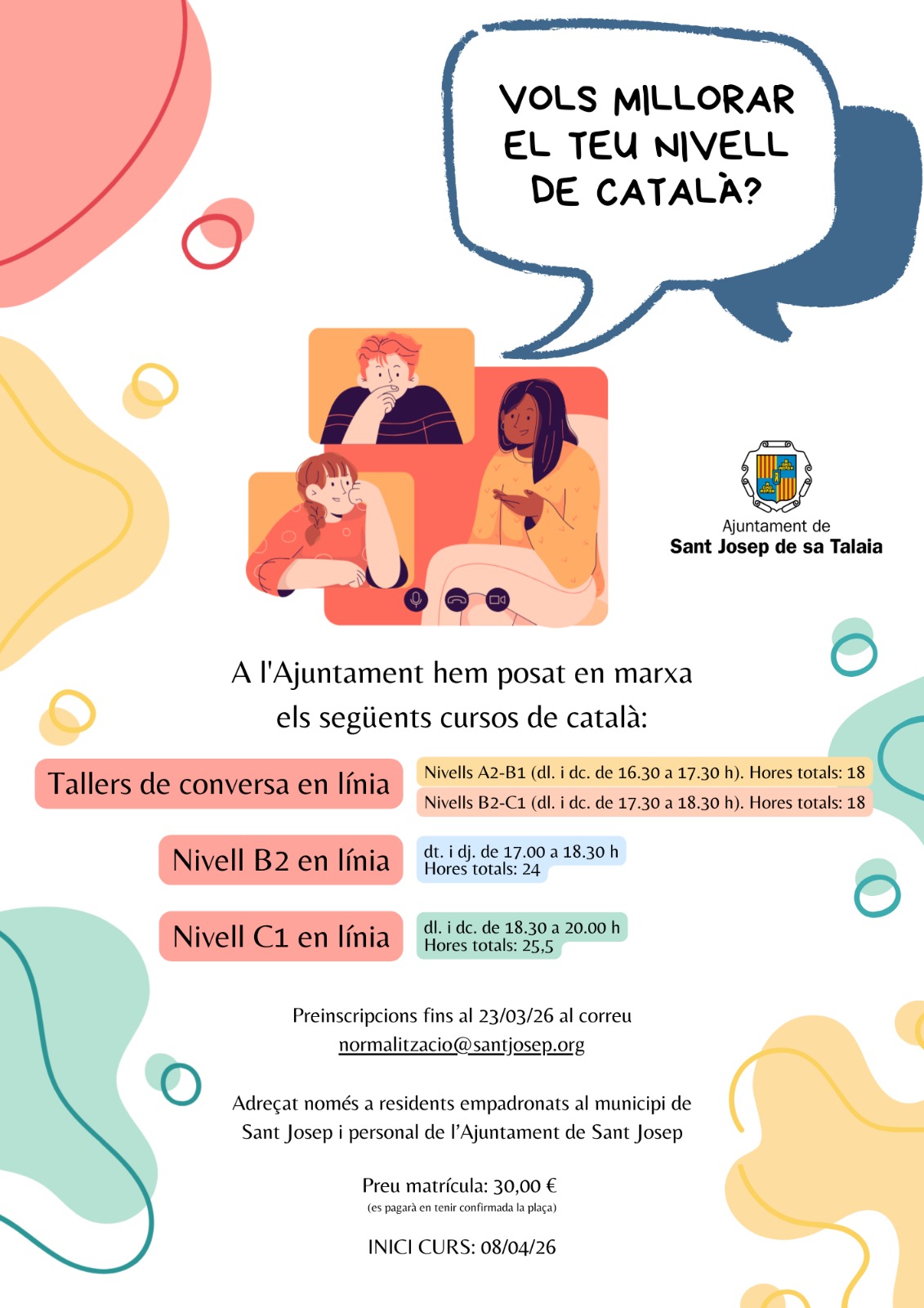 A l’Ajuntament hem posat en marxa els següents cursos de català: